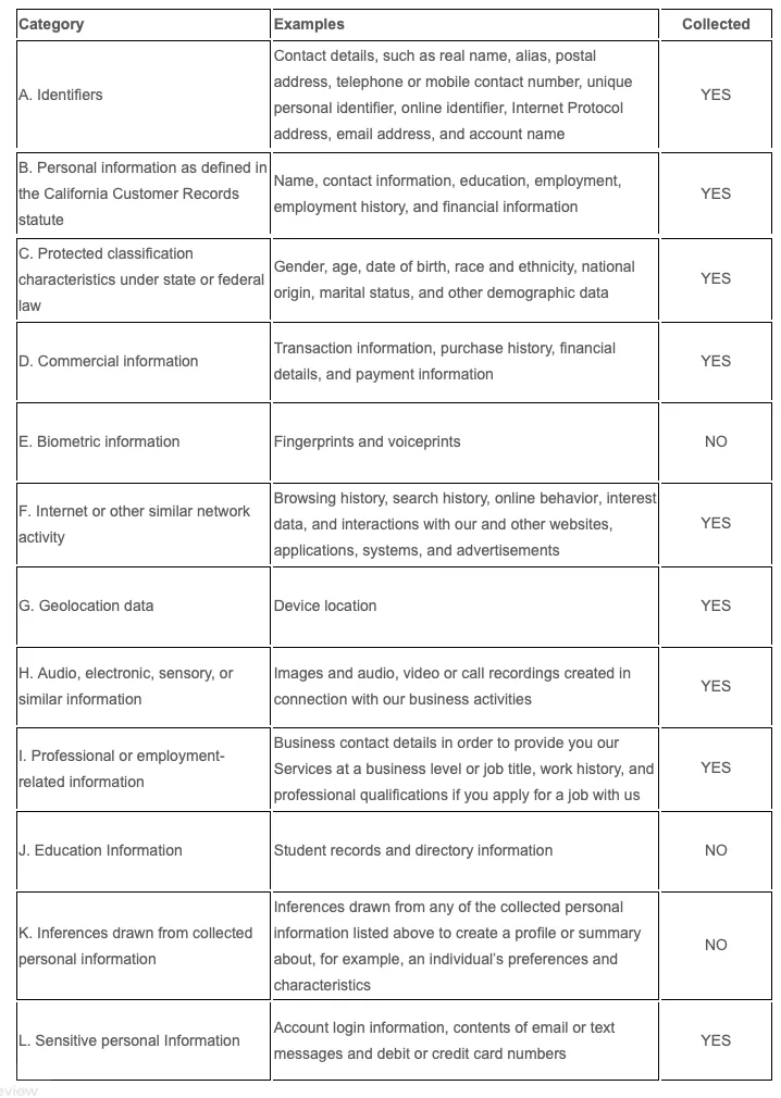 Learn more about the sources of personal information we collect in "WHAT INFORMATION DO WE COLLECT?"